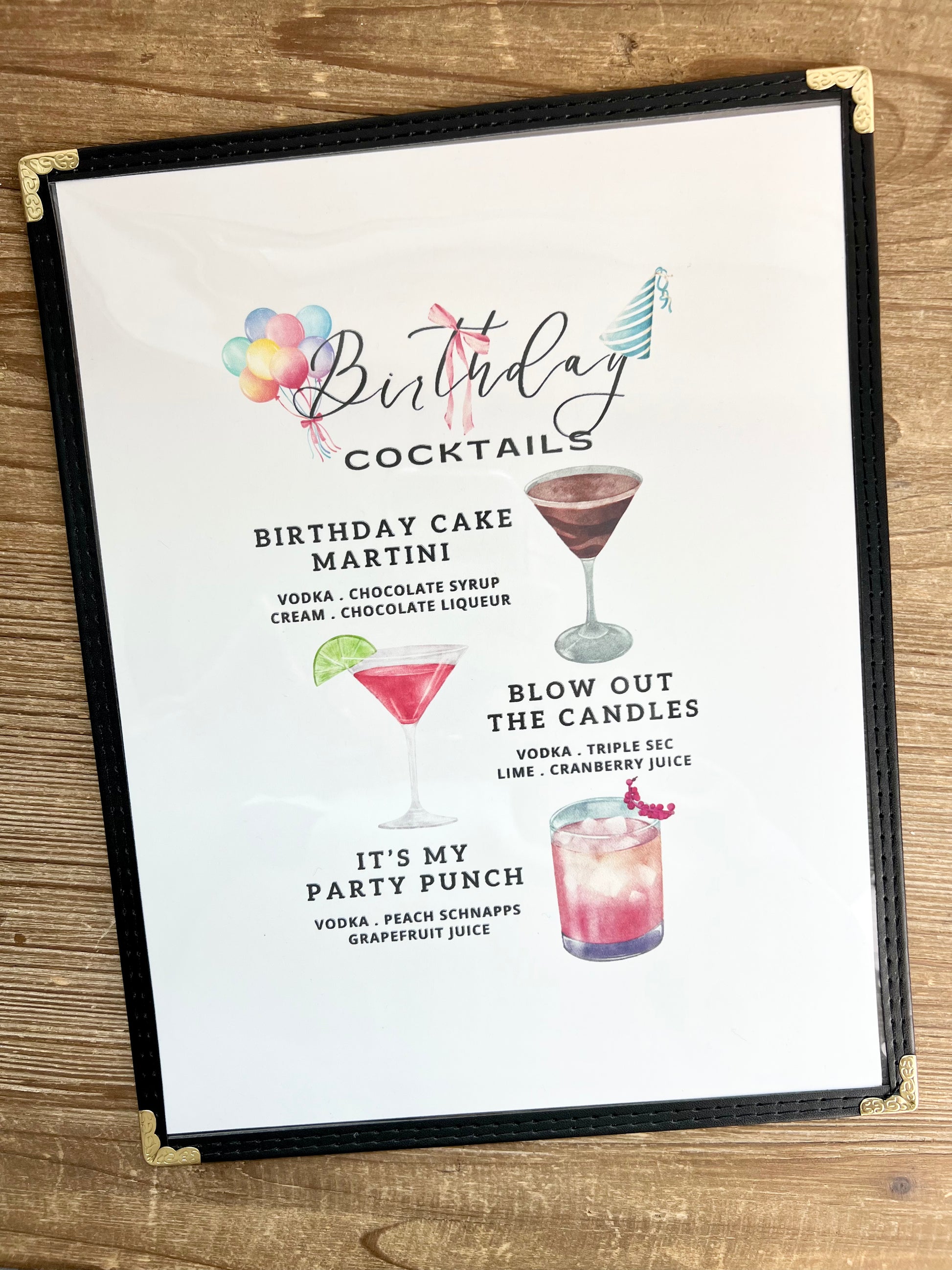 Birthday Cocktails Restaurant Menu Print
