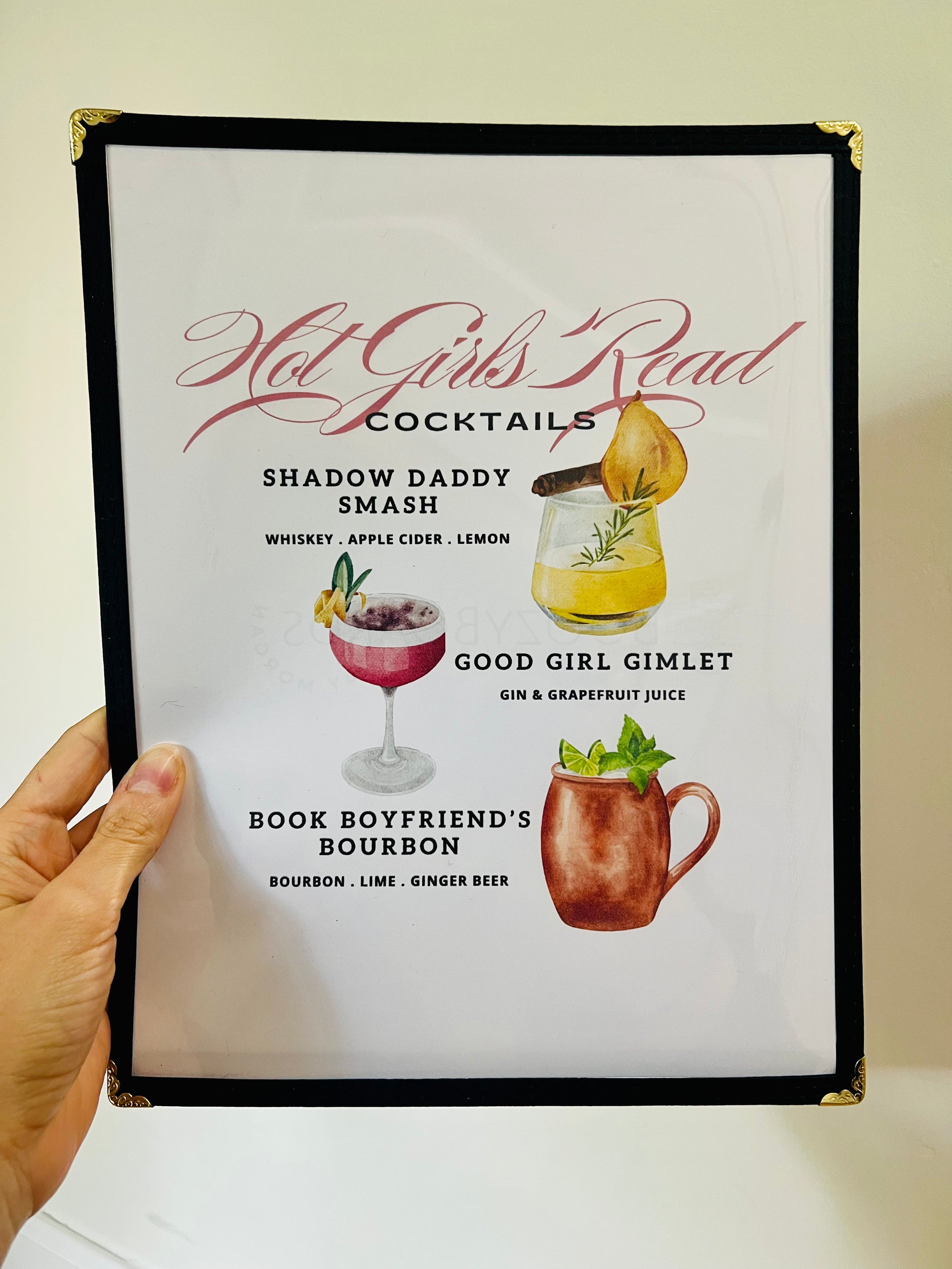 #BookTOK/Hot Girls Read Cocktails Restaurant Menu Print