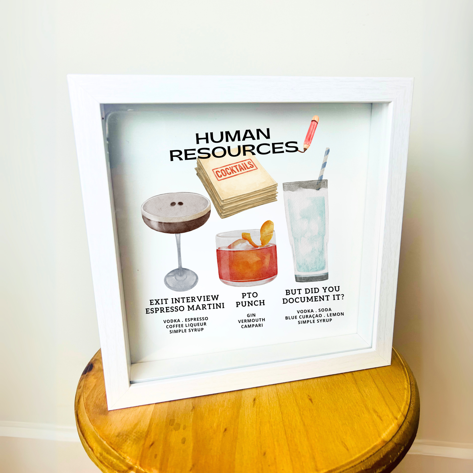 Boozy Boards are a cocktail menu for your home bar or kitchen. When guests come over and ask "What do you have to drink?" you have a pre-made Boozy Board prepared to show off your bartending skills and keep the bar stocked. Boozy Boards are a statement art and conversation piece that will wow your guests. Additionally, Boozy Boards make a unique gift that is personal to the person who has everything. Boozy Boards include the wood & glass shadowbox frame, and the cocktail menu shown.