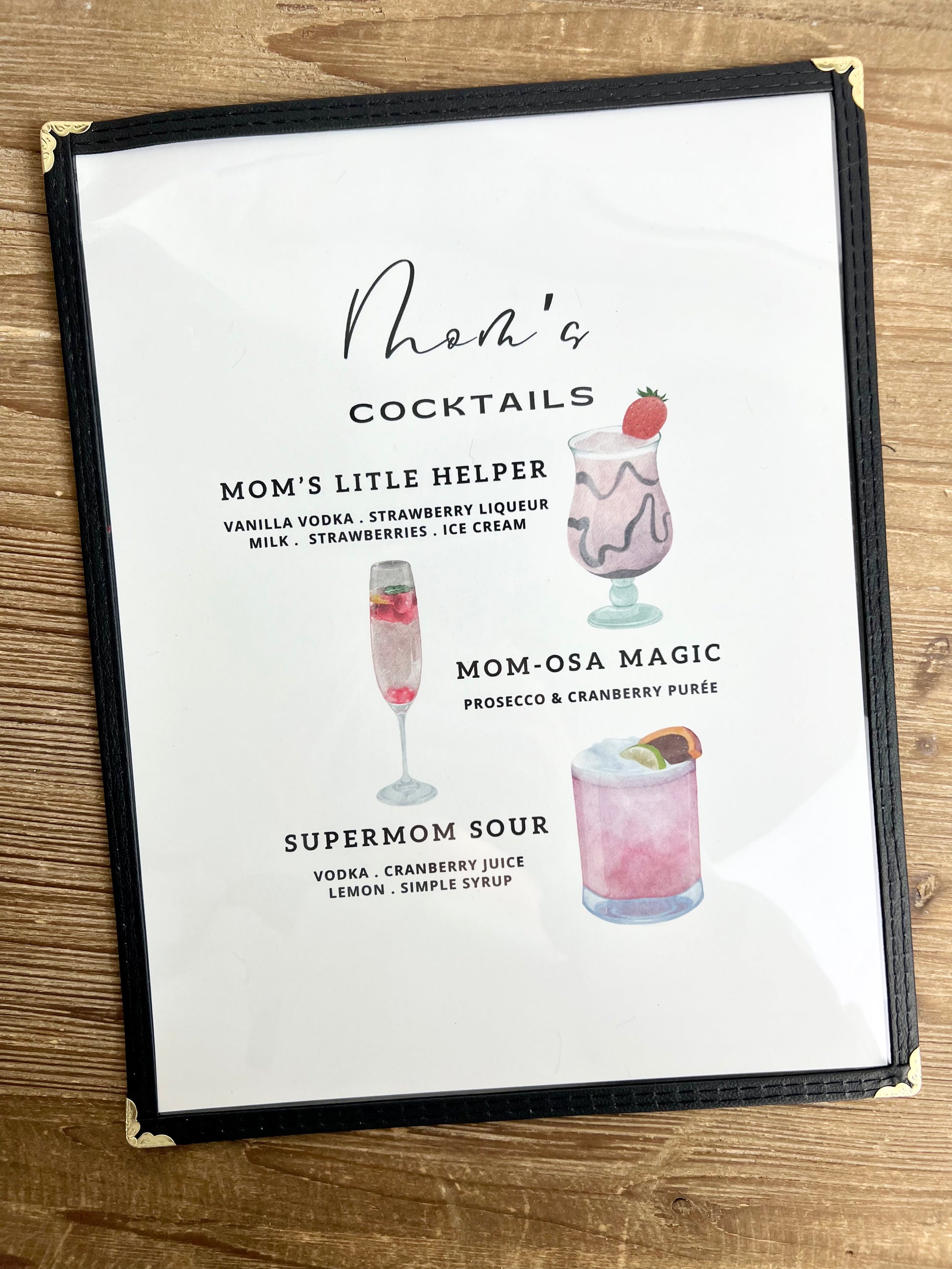 Mom's Cocktails Restaurant Menu Print