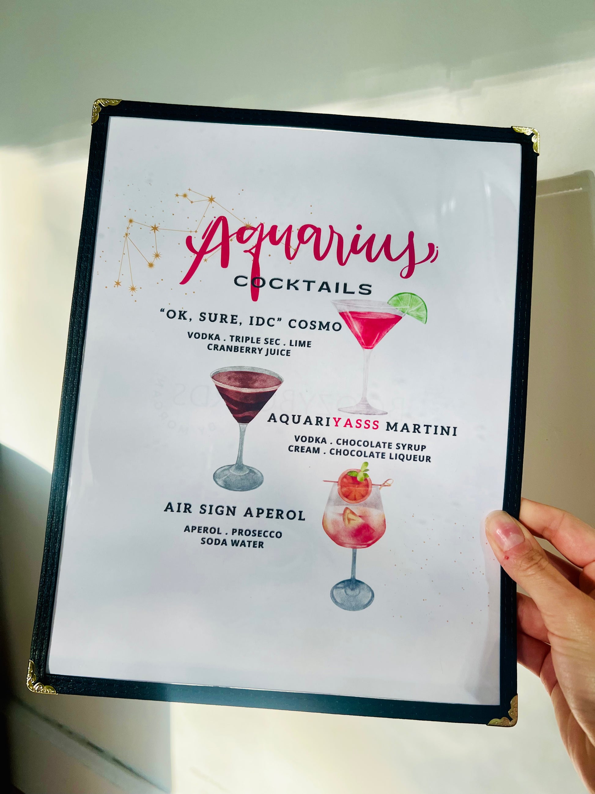 Zodiacs | Aquarius Cocktails Restaurant Menu Print