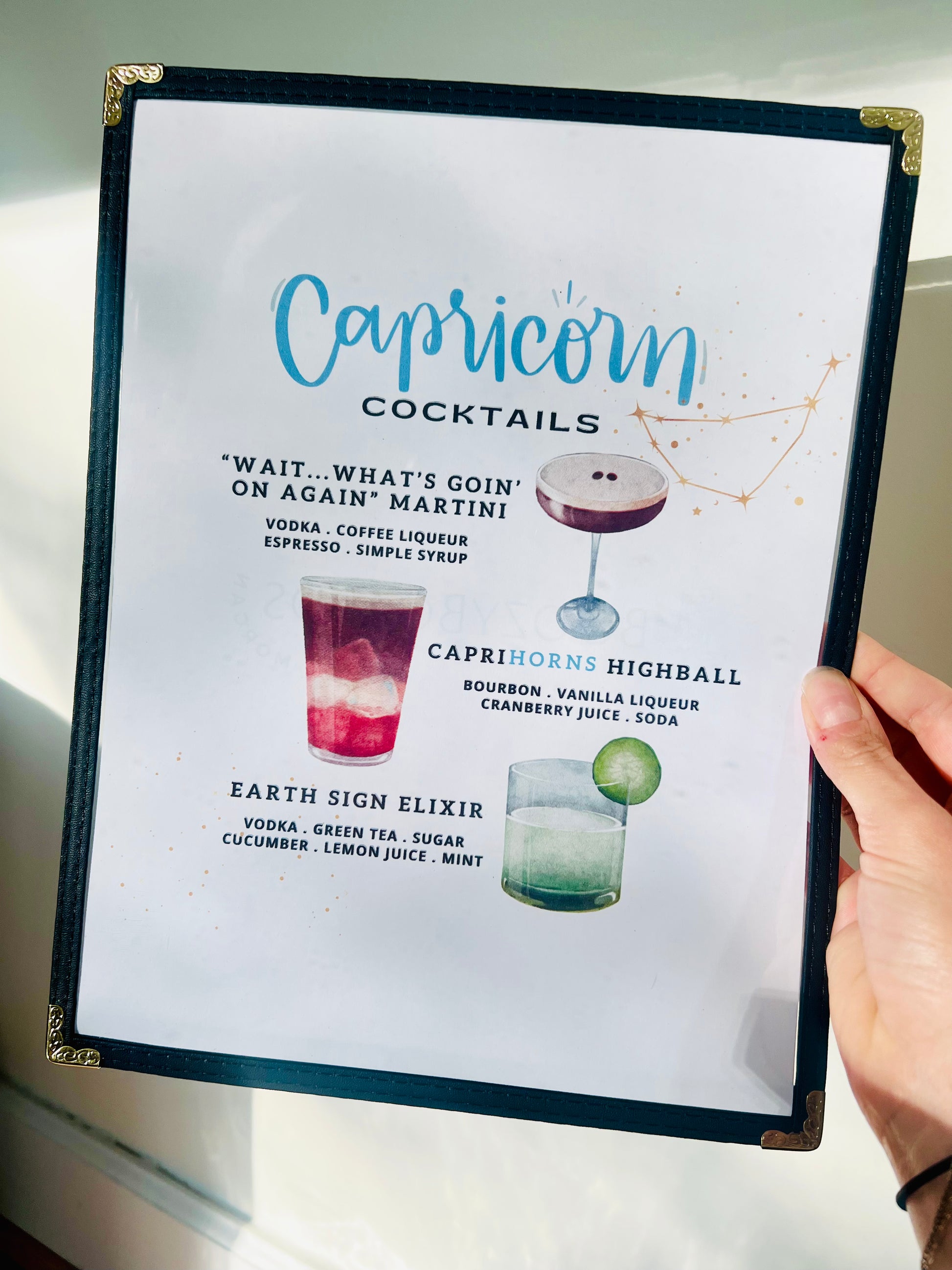 Zodiacs | Capricorn Cocktails Restaurant Menu Print