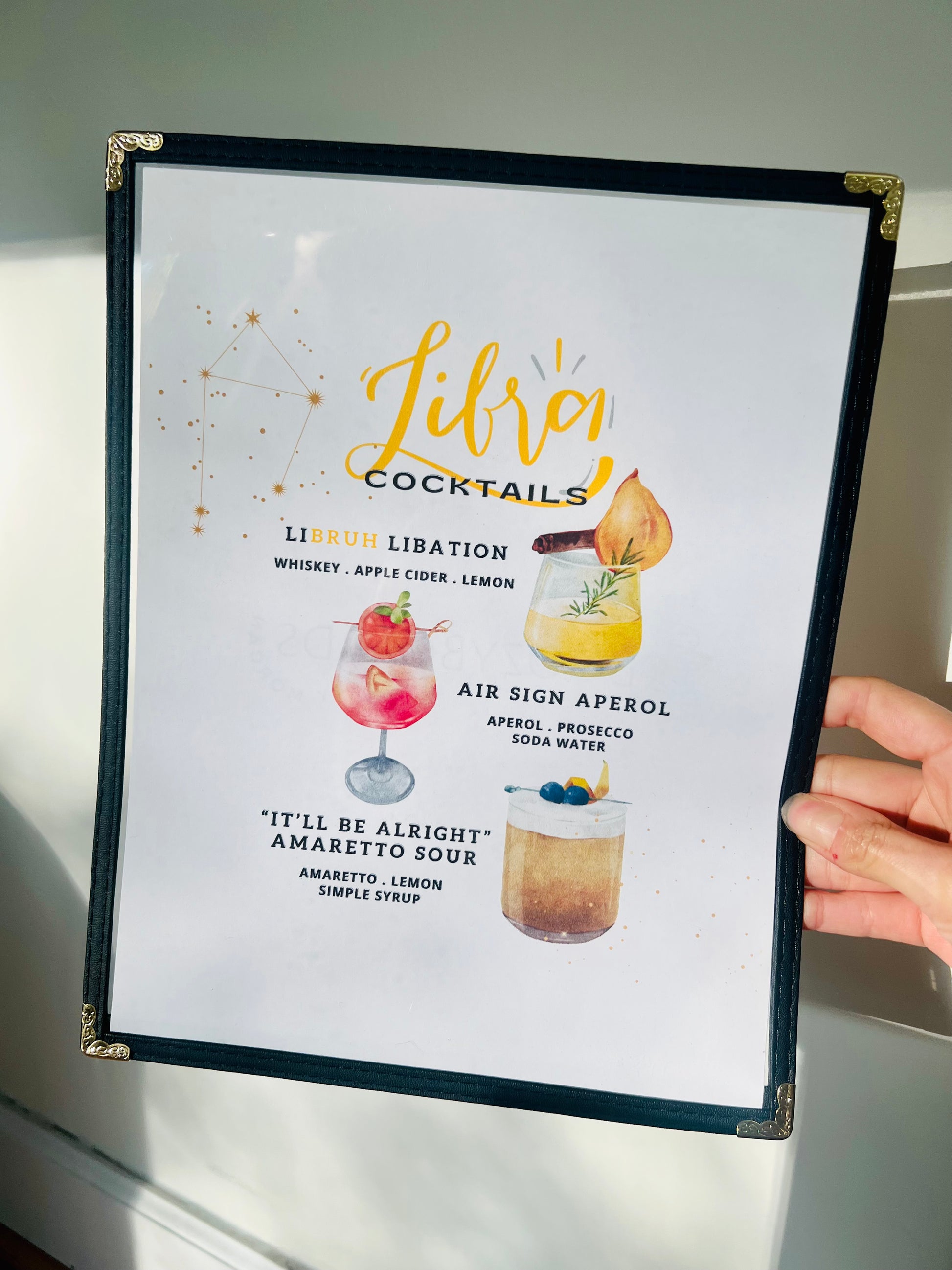 Zodiacs | Libra Cocktails Restaurant Menu Print