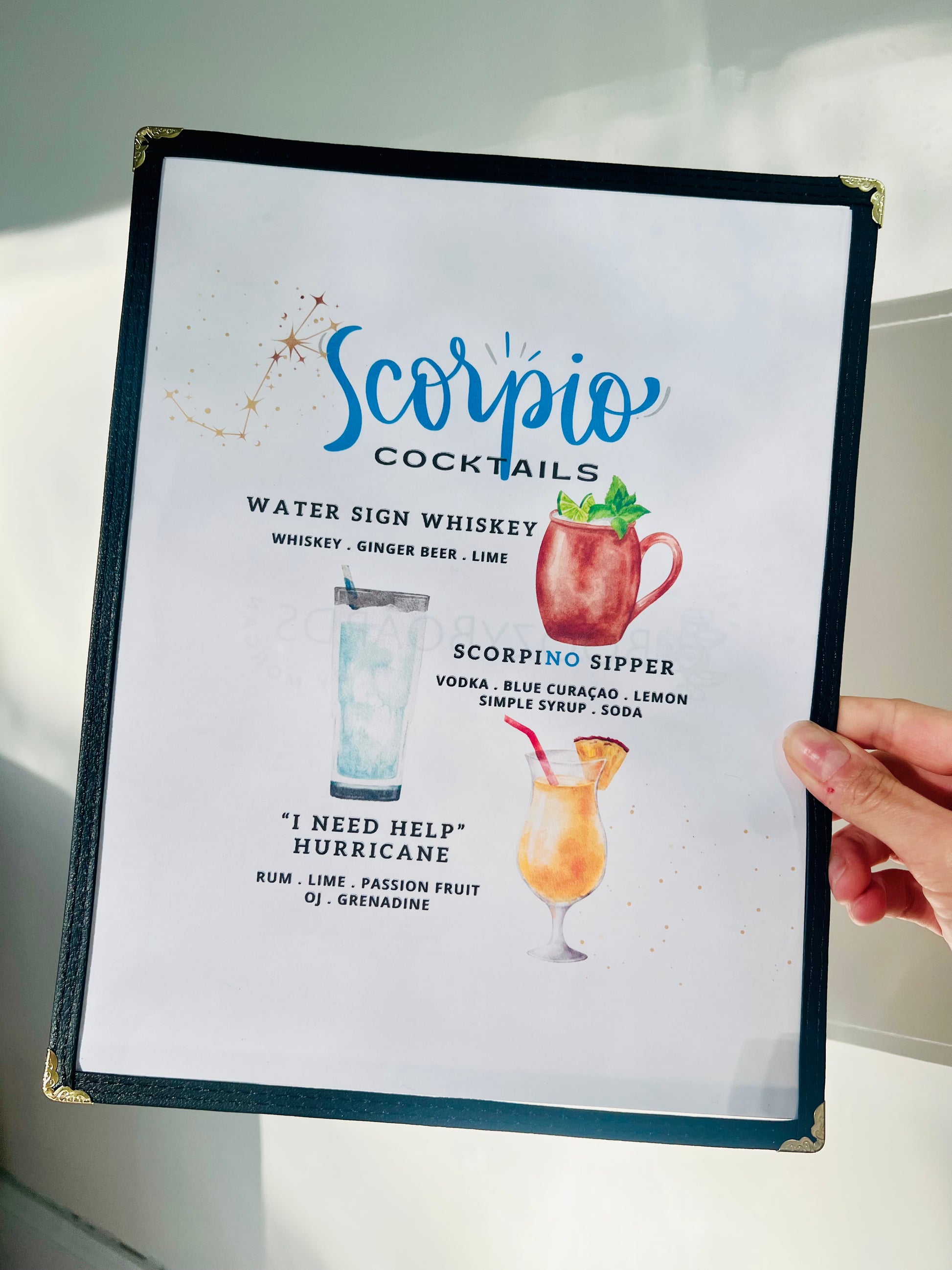 Zodiacs | Scorpio Cocktails Restaurant Menu Print