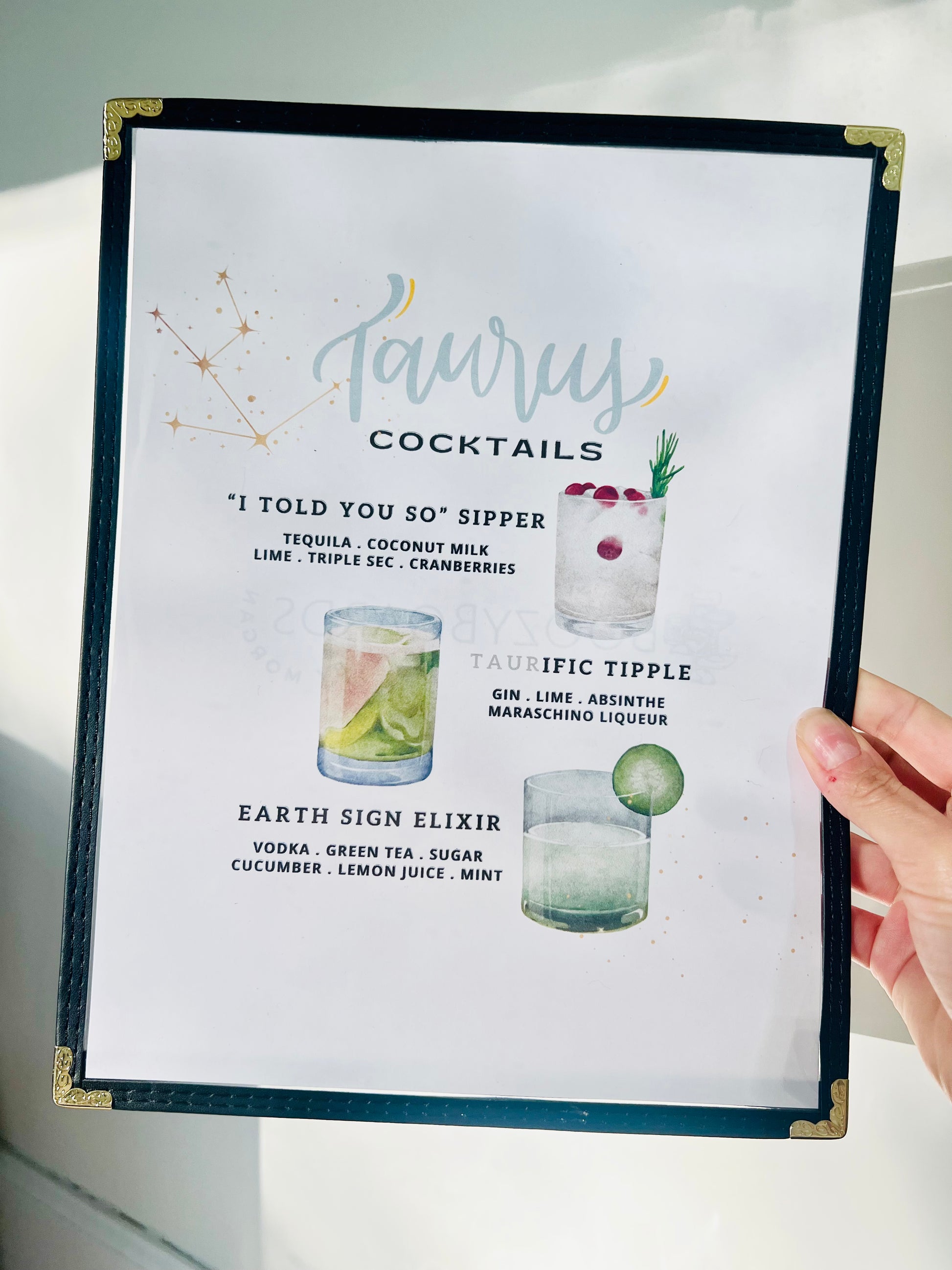 Zodiacs | Taurus Cocktails Restaurant Menu Print
