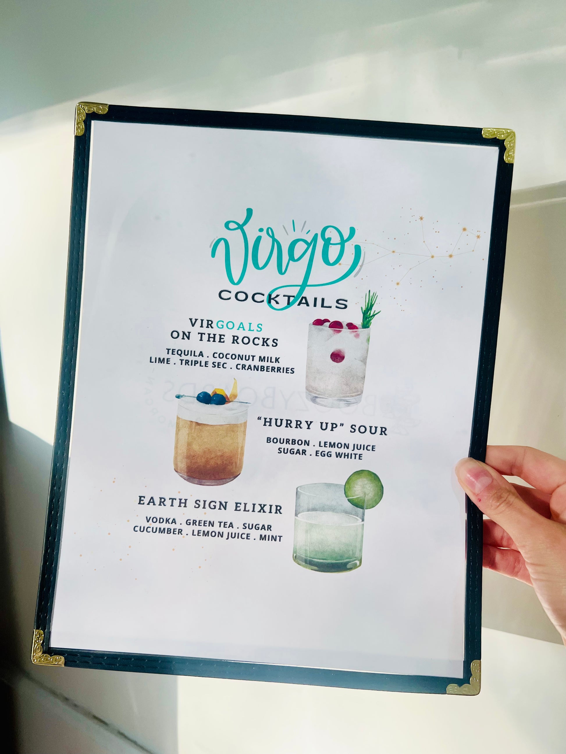 Zodiacs | Virgo Cocktails Restaurant Menu Print